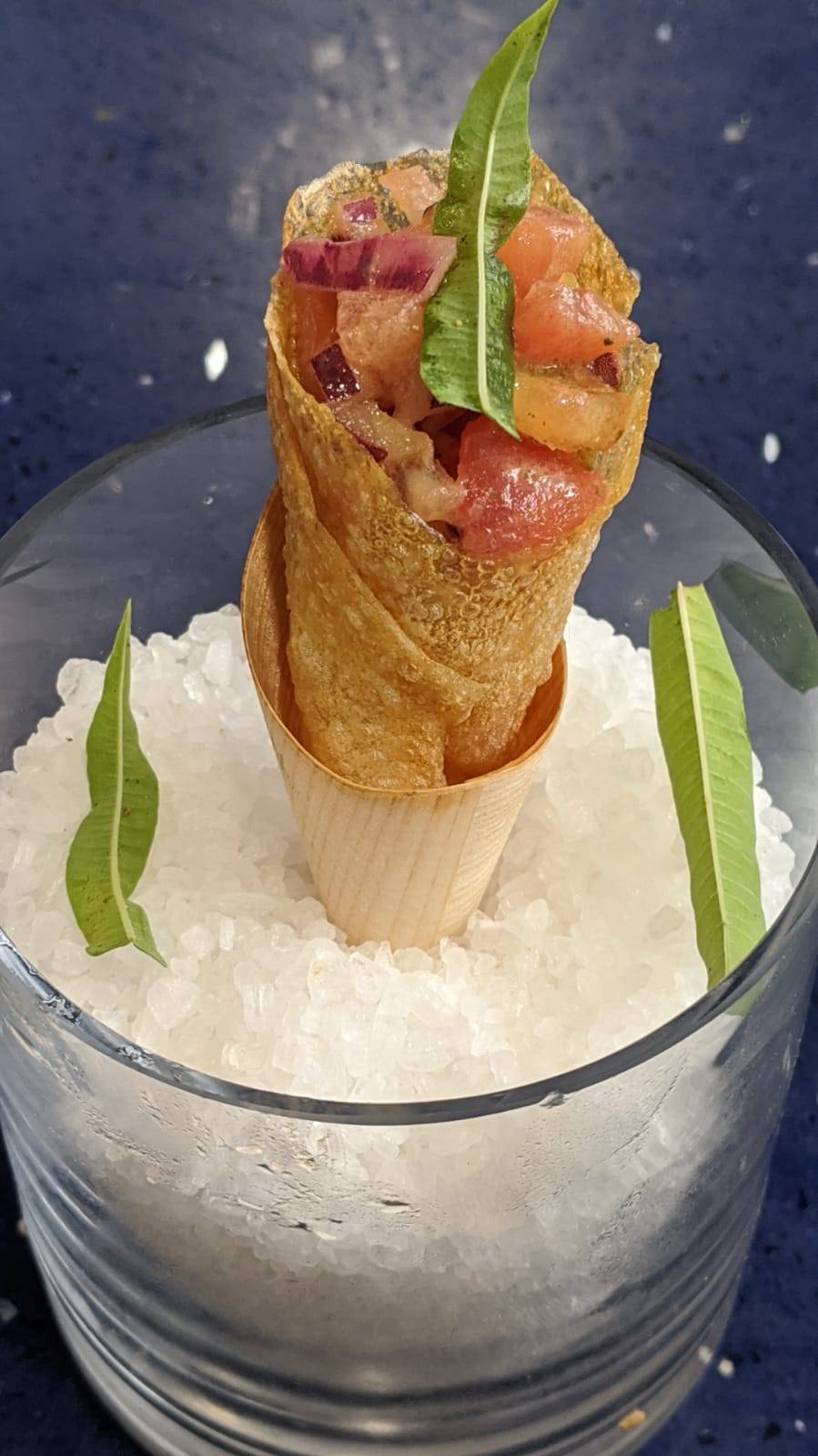 • Rape envuelto en patatas fritas / Cornet de patata con tartar de tomate : uso de patatas adaptadas para la cocción en fritura y la obtención de patatas fritas crujientes en el exterior y fundentes en su interior.