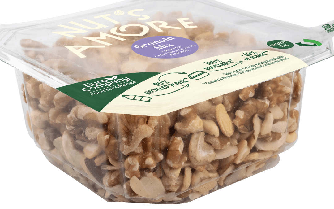 El nuevo envase de NUTS AMORE realza el valor de los frutos secos. Una presentación de Euro Company, empresa de frutas deshidratadas