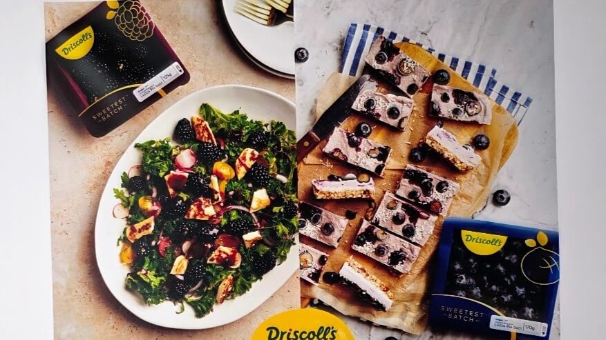 Driscoll’s tine su Sweetest Batch, es su marca premium, con envases de cartoncillo reciclado. Las variedades que utilizan en moras y arándanos son exclusivas de ellos. De promoción saben un rato. La imagen para explicarse es “gastronómica”.