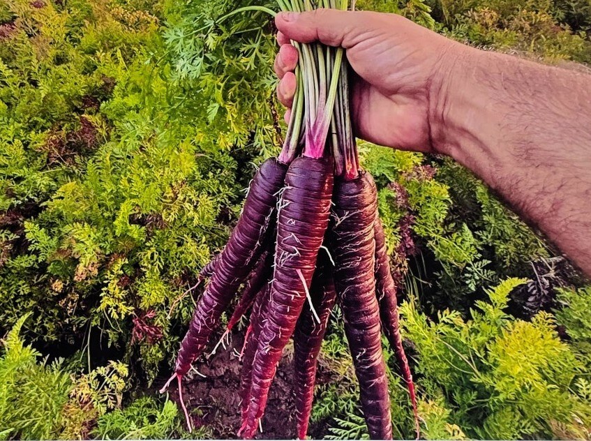 La zanahoria morada de la marca de hortalizas MuñozVal. Estos productores tienen vocación de distribuir verduras hacia la hostelería.